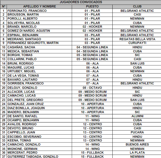 El cuerpo técnico, encabezado por Agustín Ezcurra, dio a conocer el lunes la lista de los 37 convocados que defenderán el título obtenido en la pasada edición. Los clubes que más jugadores aportan a Las Águilas son CUBA, Newman, Hindú y Belgrano